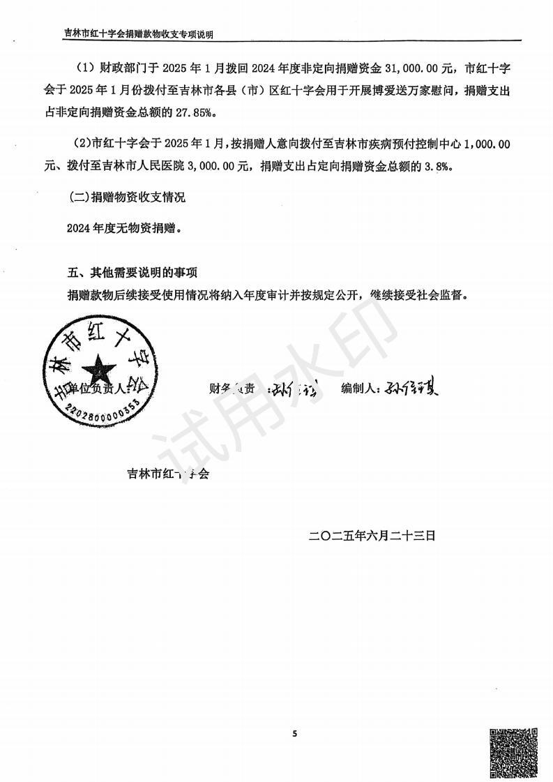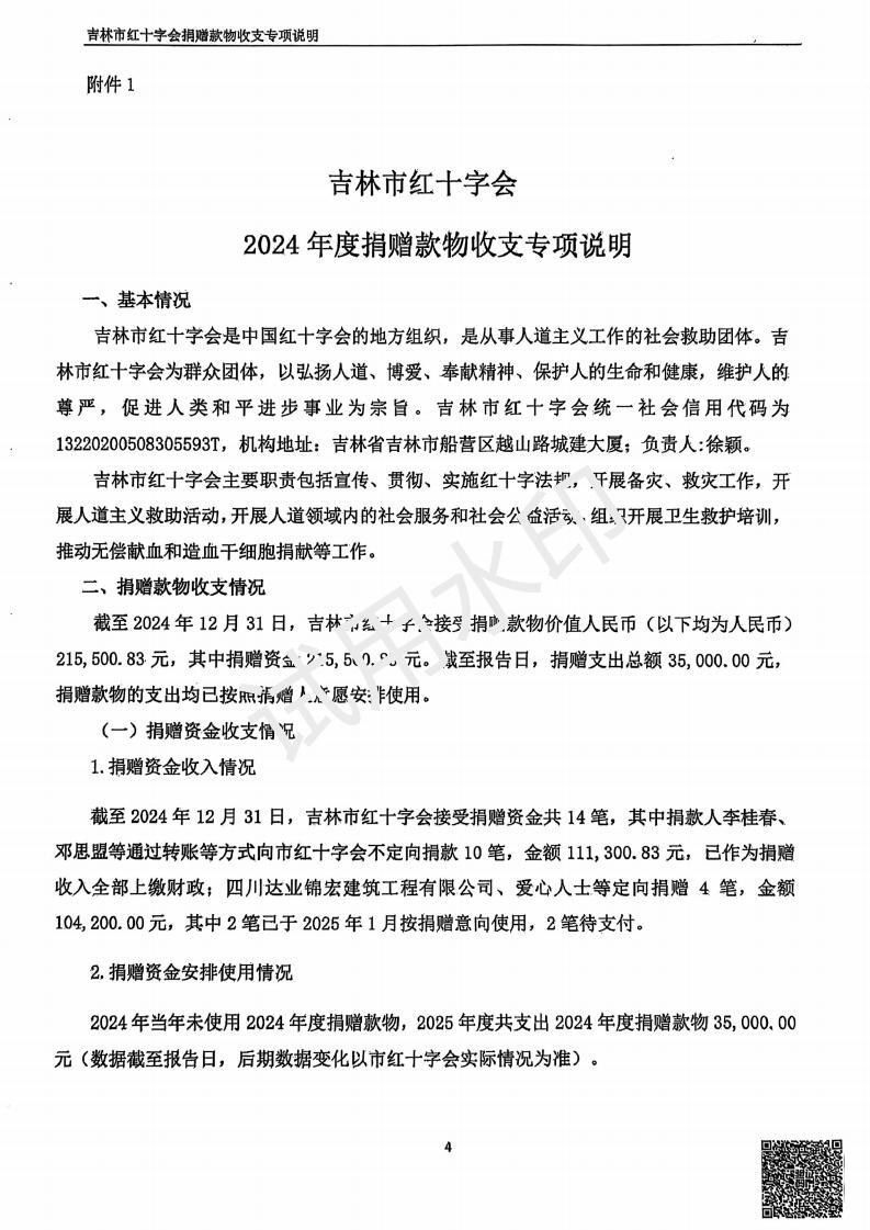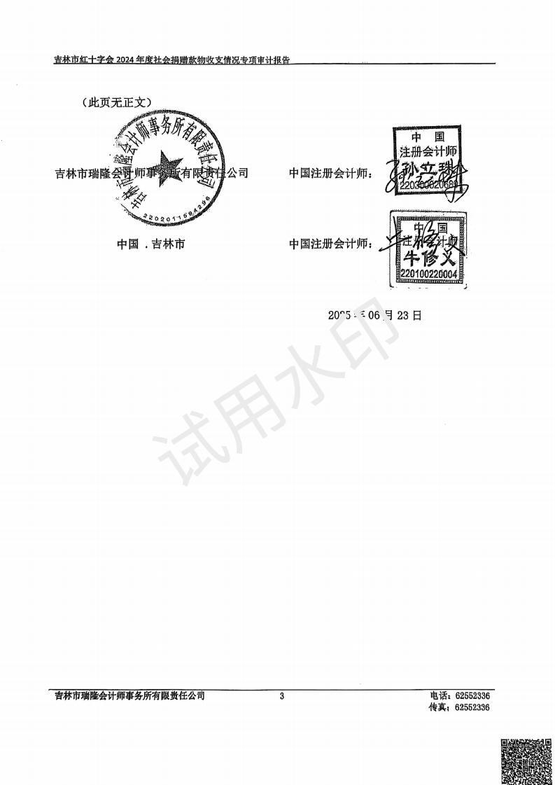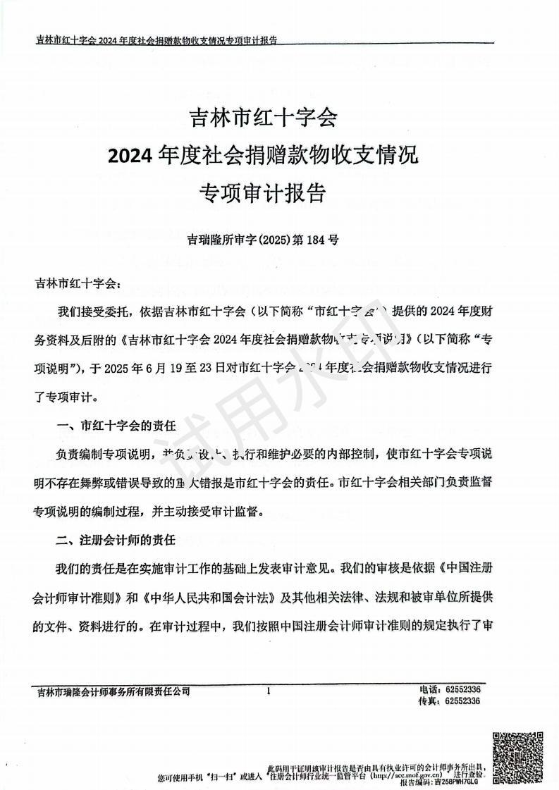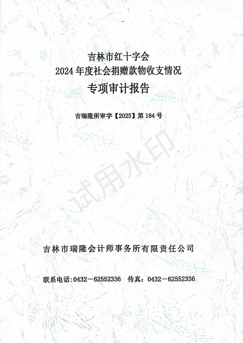 吉林市红十字会2024年度社会捐赠款物收支情况专项审计报告
