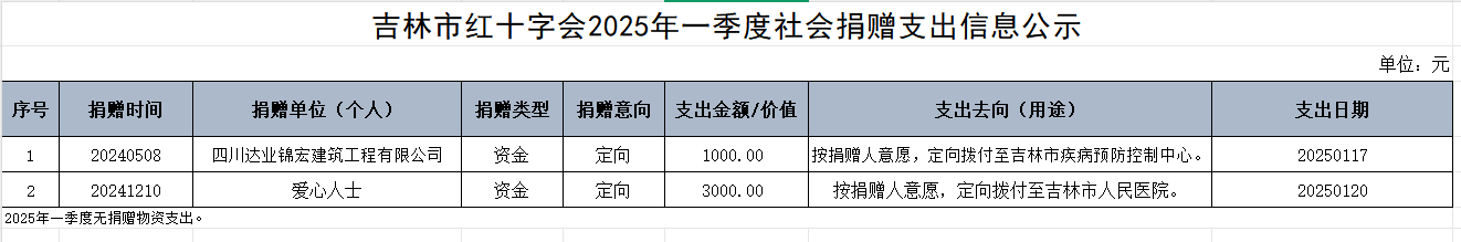 2025年一季度年社会捐赠支出信息公示
