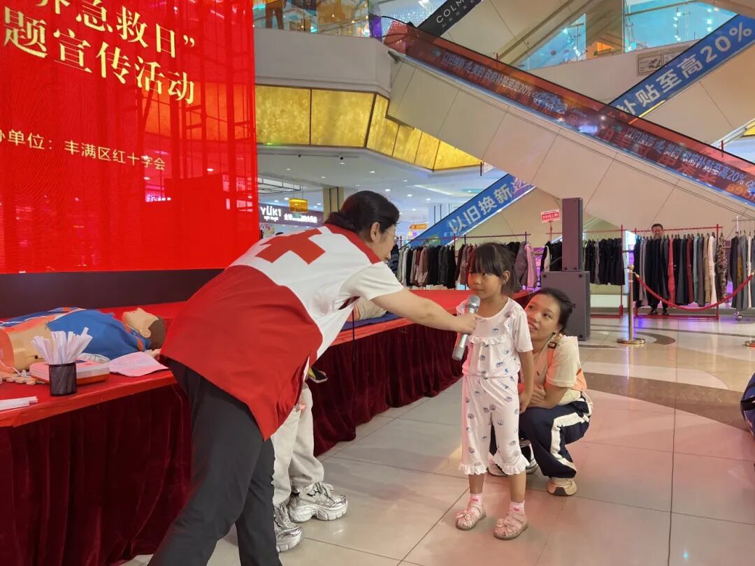 9月13日至14日,吉林市红十字会联合丰满区红十字会、船营区红十字会、昌邑区红十字会,在人流密集的万瑞城、欧亚综合体两大商圈,开展“世界急救日”暨“久久公益节”主题宣传活动,让商圈变成“急救知识宣传站”。