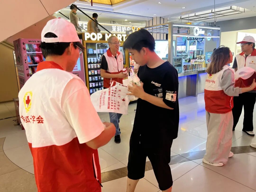 红十字志愿者发放宣传单