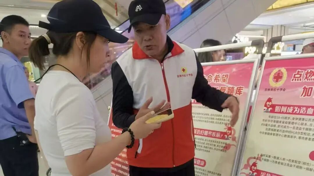 现场设置五块展板,向群众展示造血干细胞捐献知识和“久久公益节”筹资项目,来自吉林市红十字会志愿者工作站和吉林医药学院红十字会的十余名红十字志愿者在商场出入口引导群众前往主舞台参加活动,并向过往市民发放“三献”宣传单,耐心讲解无偿献血的流程与益处、造血干细胞捐献的科学常识,消除公众对“三献”的认知误区;同时介绍“久久公益节”筹资项目,呼吁市民通过小额捐赠支持公益事业,让急救知识传播与公益力量汇聚形成良性互动。
